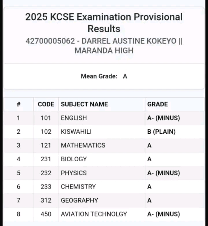 “I don’t know why I am crying but trust me I wish your mom was alive to celebrate this, my son. MY SON IS NO 1 IN MARANDA BOYS, DAREL ITIEKA CHUTH, GOING TO COLLECT THESE RESULTS WITH YOU. You calling me Aunty has shifted a lot in me in this life. BEST FRIEND TO OJWANG JA SWISS. VERY DISCIPLINED BOY.