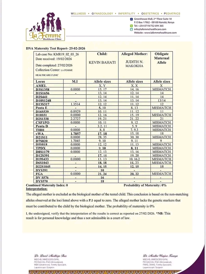 In conclusion, the DNA test has definitively ended the debate about Bahati’s biological mother, confirming that Makokha is not related to him.