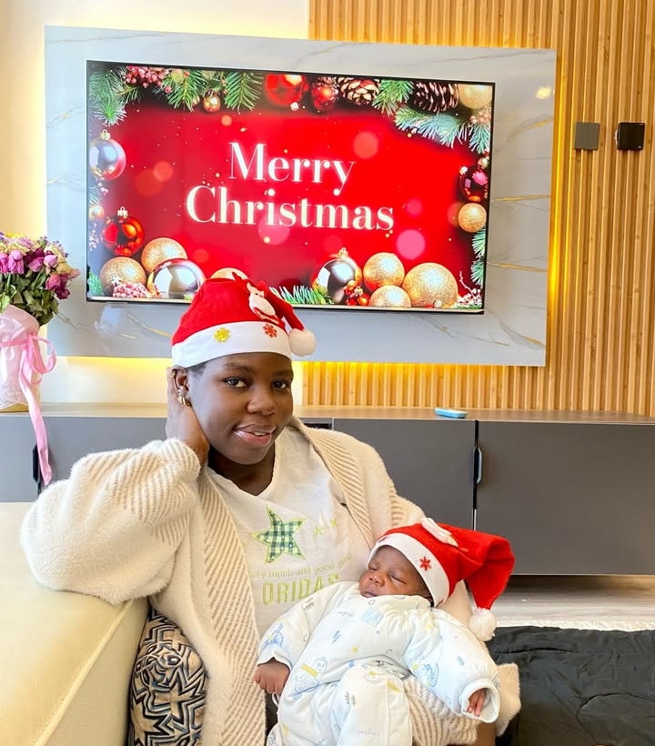 In the heartwarming post, the popular entertainer shared a photo of herself dressed in a Christmas-themed outfit while lovingly holding her newborn baby, who was adorably spotted wearing a tiny Santa hat.