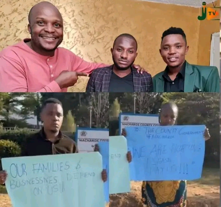 He then accompanied it with another photo showing Kioko and his sister carrying placards outside county offices, demanding payment from the Machakos County Government after delivering on a tender.