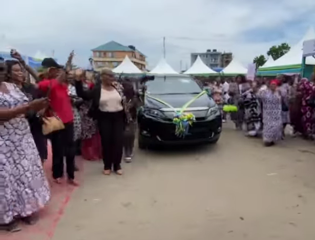 Videos circulating widely on social media show the moment the elderly mother was presented with the car, reported to be a new Toyota Harrier, as people around her applauded and cheered.