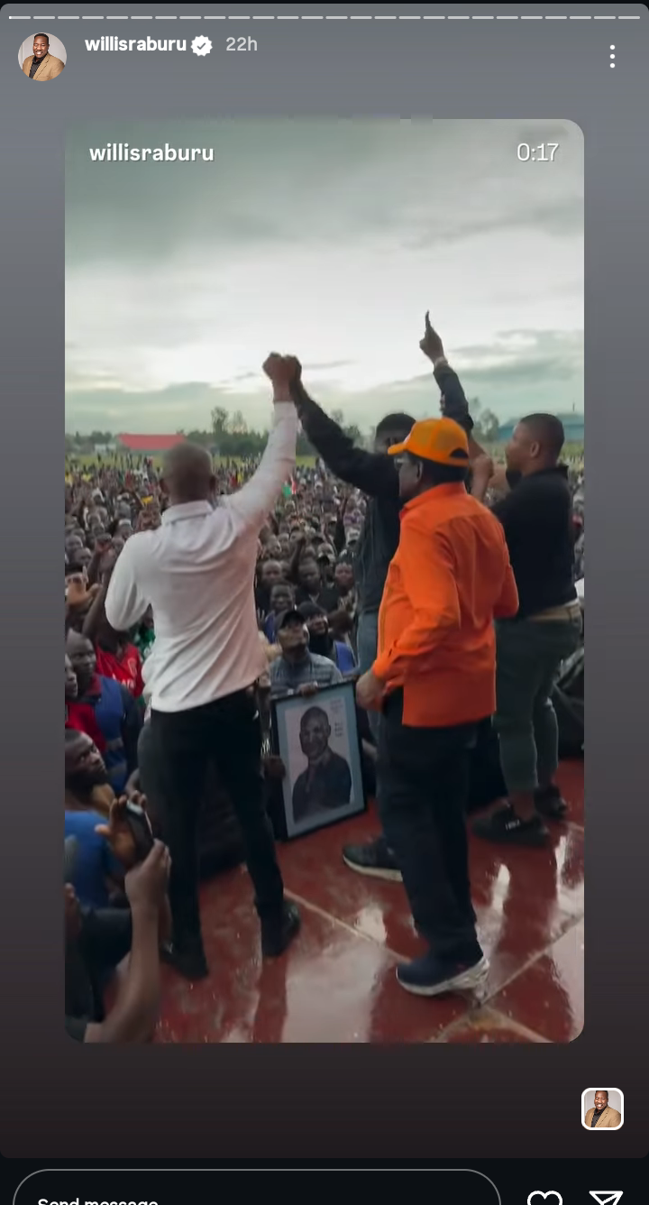 During the rally, Raburu was welcomed onto the stage by Babu Owino, who made the endorsement official in front of an enthusiastic crowd.