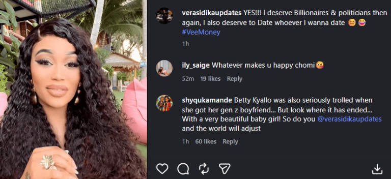 Kenyan socialite and media personality Vera Sidika has once again ignited debate across social media after boldly declaring that while she believes she deserves to date billionaires and politicians, she ultimately reserves the right to choose whoever she wants.