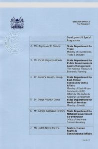 Ms. Regina Akoth Ombam nominated PS State Department for Trade Ministry of Investments, Trade & Industry.
