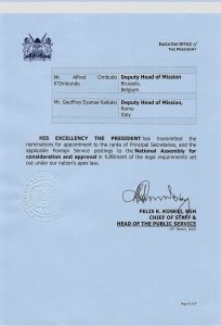 Trade PS Alfred Ombudo K’Ombudo has, on his part, been nominated as the Deputy Head of Mission in Belgium while his East African Community (EAC) counterpart Abdi Dubat Fidhow was picked as Consul-General in Arusha, Tanzania.