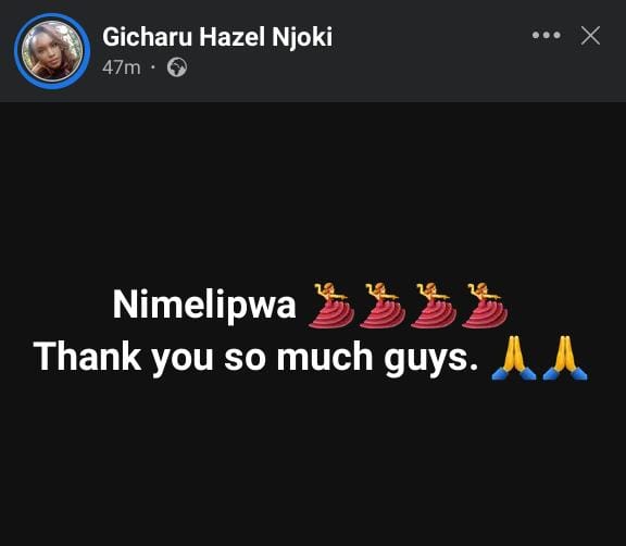 “Mumelipwa. Thank you so much guys,” she wrote.