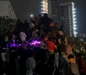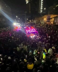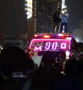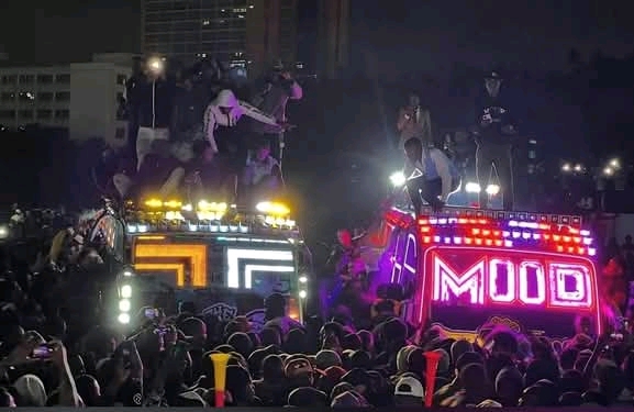 In videos that have fast gone viral and seen by Nairobi News, hundreds of young Nairobians could be seen singing and dancing as Mood drove slowly at the KICC grounds.