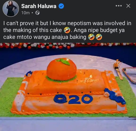 “I can’t prove it but I know nepotism was involved in the making of this cake 🤣. Anga nipe budget ya cake mtoto wangu anajua baking 🤣🤣.”