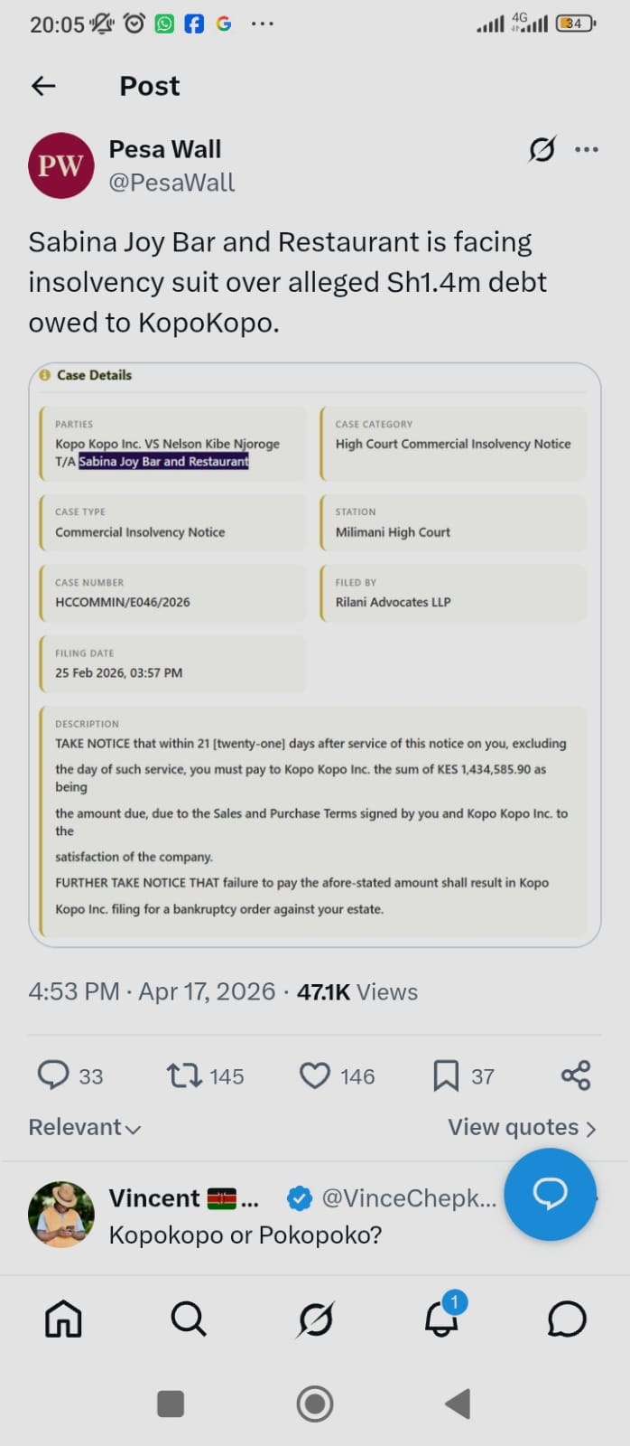 News of its legal troubles has sparked widespread reactions online, with many Kenyans expressing shock, and some disbelief, at the possibility of its downfall.