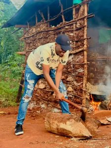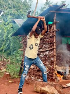 On the night of Tuesday, August 26, 2025, Kai posted several photos of himself hacking firewood outside his mother’s kitchen as he disclosed he had been instructed by the mum to help her with the firewood.
