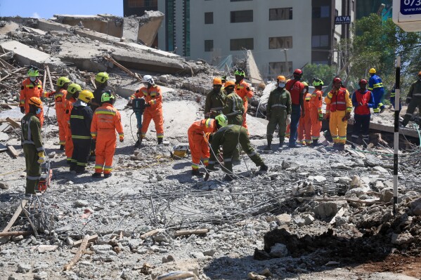 Search teams retrieve one body from the collapsed South C building in Nairobi