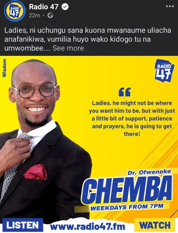 Speaking during his Chemba Show on Radio 47 on Friday, October 24, 2025, the comedian revealed that his then girlfriend dumped him as he waited for her at church after realising he couldn’t afford the kind of lifestyle she desired.
